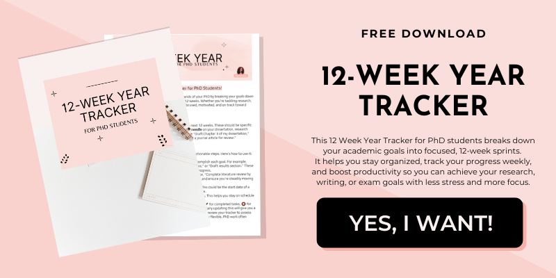 In this post, I’ll explain how the 12 Week Year method works and provide three key components for applying it to your PhD journey. By the end, you’ll have a clear roadmap for goal setting that will help you navigate each semester with confidence and efficiency.